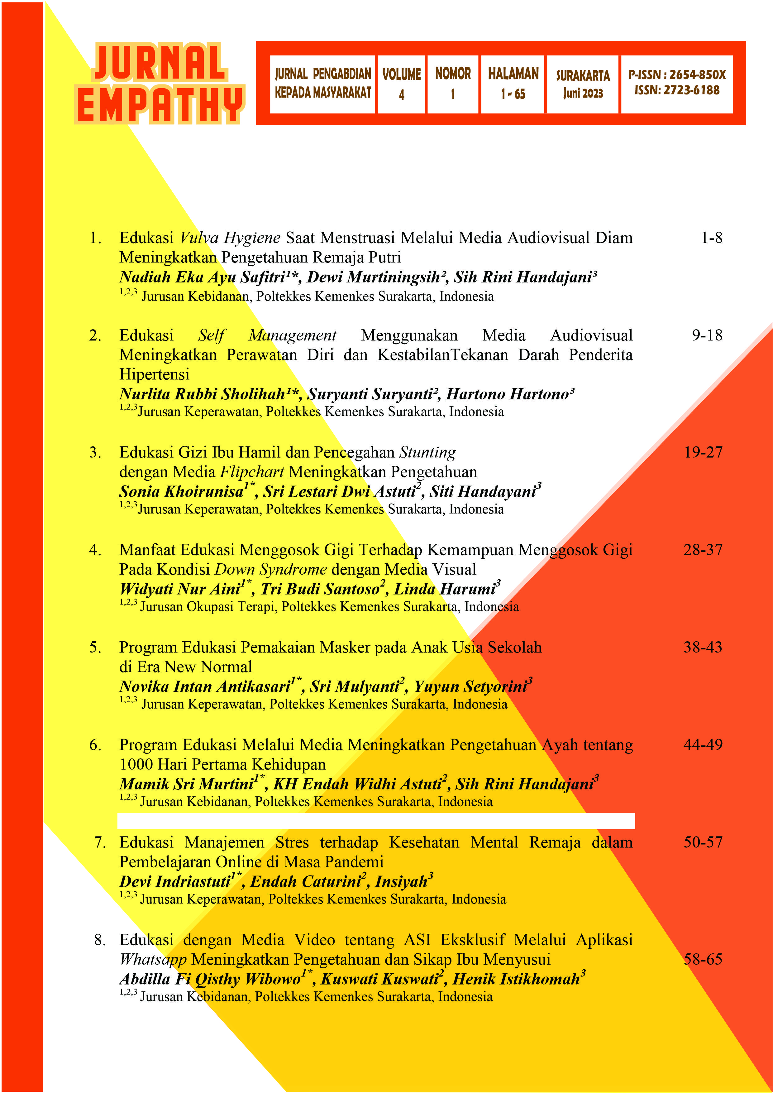 Hati, T. D. (2017). Pengaruh penyuluhan dengan media booklet terhadap pengetahuan dan sikap ibu anak balita tentang keluarga sadar gizi di Desa Grogol, Kecamatan Weru, Kabupaten Sukoharjo [Skripsi, Universitas Muhammadiyah Surakarta].
